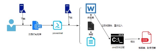 当用户使用了非官方渠道下载精心打包的恶意程序,恶意程序即执行捆绑的 PowerShell 脚本进一步下载后续恶意文件包,其中使用了白加黑技术加载恶意的加密模块 wwlib.dll,并设置服务态启动,使得勒索实际过程在重启之后触发,重启之后 加密勒索程序被注入到 cmd.exe(mmc.exe、svchost.exe 等),等待加密完成后, 释放解密器和勒索信,针对该恶意攻击样本,安恒应急响应中心根据分析结果第一时 间发布风险提示,提醒用户注意规避和防范。