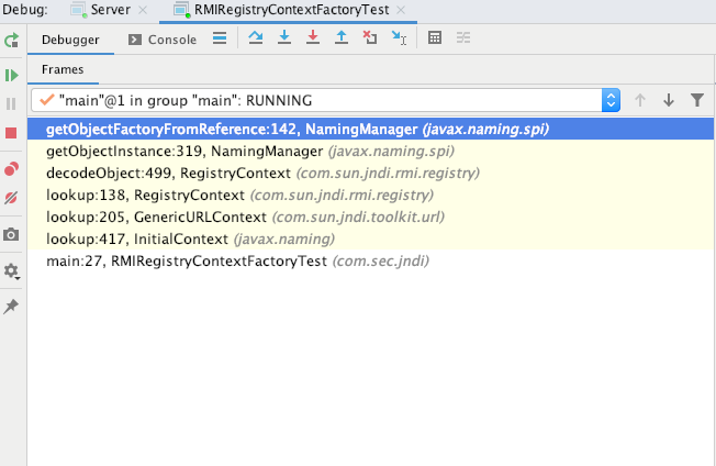 在JNDI服务中,RMI服务端除了直接绑定远程对象之外,还可以通过References类来绑定一个外部的远程对象(当前名称目录系统之外的对象)。绑定了Reference之后,服务端会先通过Referenceable.getReference()获取绑定对象的引用,并且在目录中保存。当客户端在lookup()查找这个远程对象时,客户端会获取相应的object factory,最终通过factory类将reference转换为具体的对象实例。