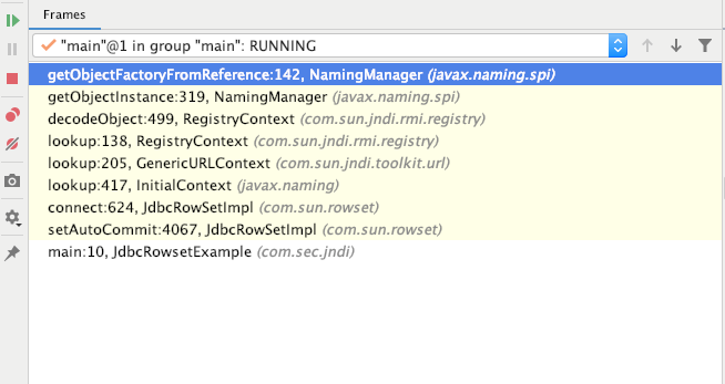 在实战过程中,context.lookup直接被外部调用的情况比较少,但是我们可以通过间接调用context.lookup实现JNDI的注入,JdbcRowSetImpl就是这样一条利用链,先来看一下最终的POC