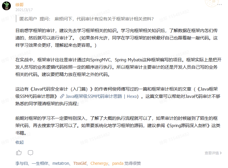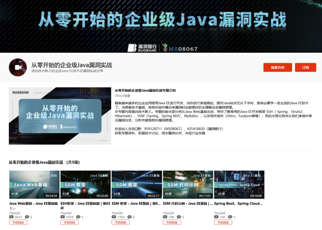 从内容上来讲,知识星球的定位是图书的部分配套技术视频讲解。而直播培训内容是在此基础上一整套全新的课程体系,强化了JAVA基础,漏洞覆盖面也更全跟更详细、进阶干货内容更加深入、开源组件漏洞分析案例也更多等,总之有本质的区别。