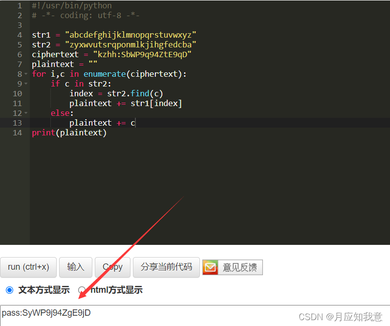 猜测这里的密码很有可能用了替换加密。这个加密的密码很有可能是之前在网页源代码中看到的注释。