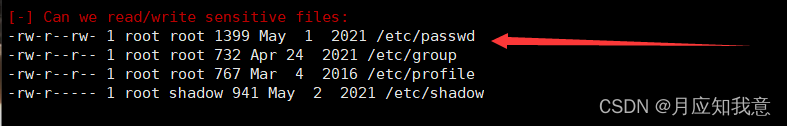 如图,这里发现/etc/passwd文件任何用户是可读可写的。