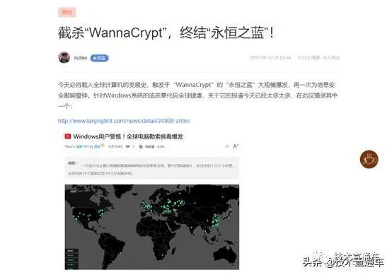 2017年5月13日,在“胖哥技术堂”中发布了《截杀“WannaCrypt”,终结“永恒之蓝”》。三年后的今天再次为“永恒之黑”发文。