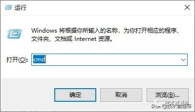 以Windows 10 Version 1909操作系统为例,按Windows键+R键,打开“运行”对话框,输入“cmd”,点击“确定”,打开命令提示行窗口。