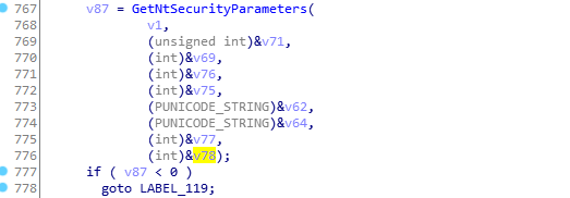 进入函数GetNtSecurityParameters,函数参数中的v78为通过wordcount和Bytecount计算出来的一个size。