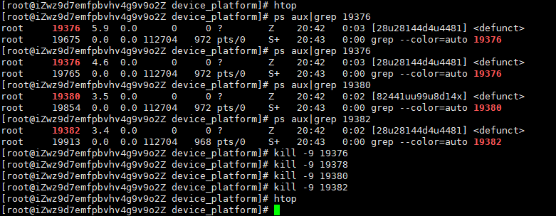 这里特别要注意,要杀僵尸进程,一定要先杀死他的父进程,这样子进程就会自动挂了。