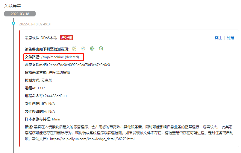 接着我们根据阿里云扫描得到的信息,第一时间先去把它在我们服务器上留存的脚本,先删掉。