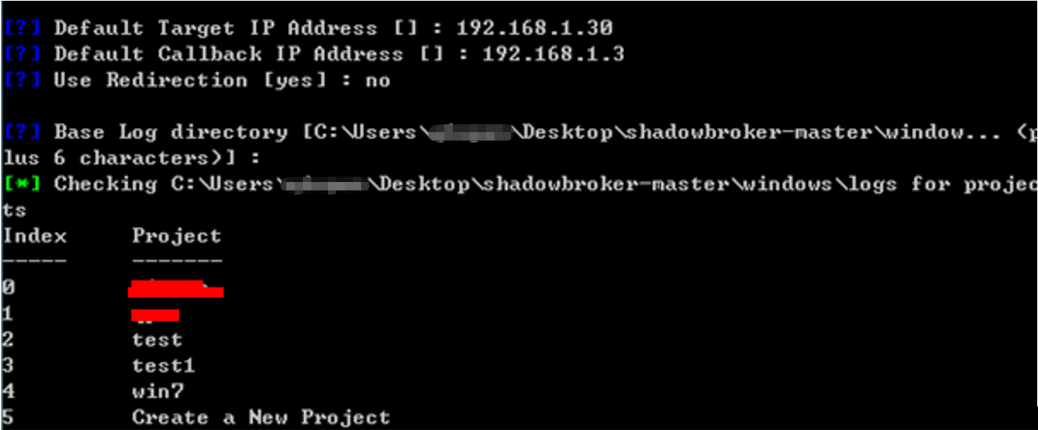 Python2.6工具直接安装即可,PyWin32 v212的安装需要以管理员权限执行,shadowbrokers-master直接解压到指定目录,在其子目录windows中建立listeningposts文件夹,同时修改FuzzyBunch.xml文件内容,设置相应的ResourcesDir和LogDir参数值,修改结果如下图所示。