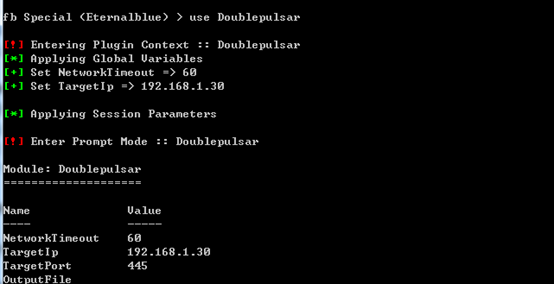 将生成的木马程序copy到win7攻击机中c盘根目录下。然后使用fuzzbunch做些简单的配置,配置参数如下图所示。