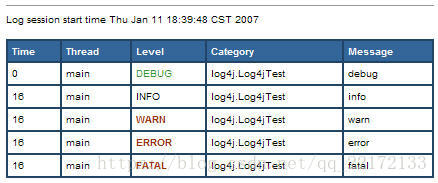- HTMLLayout : 以HTML表格形式布局,格式化日志输出为HTML表格形式如下