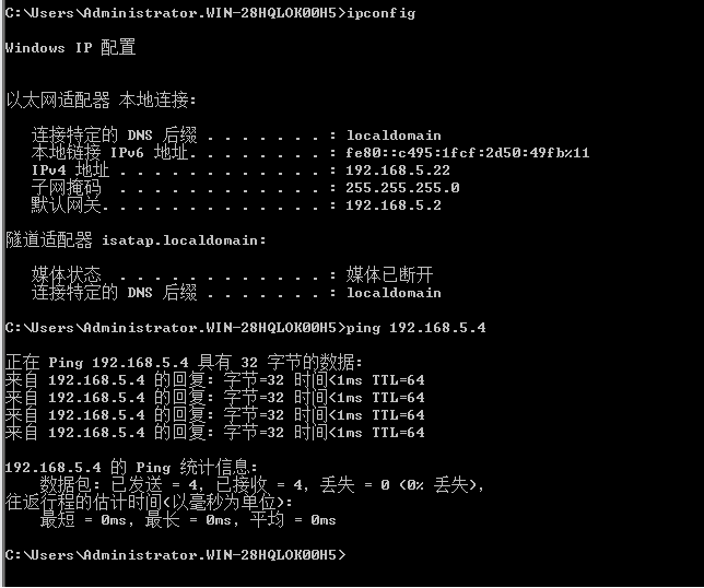 注:Windows服务器需关闭防火墙,否则无法ping通