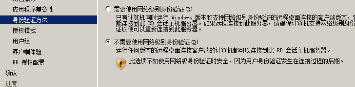 在身份验证方法界面,选择“不需要使用网络级别身份验证”