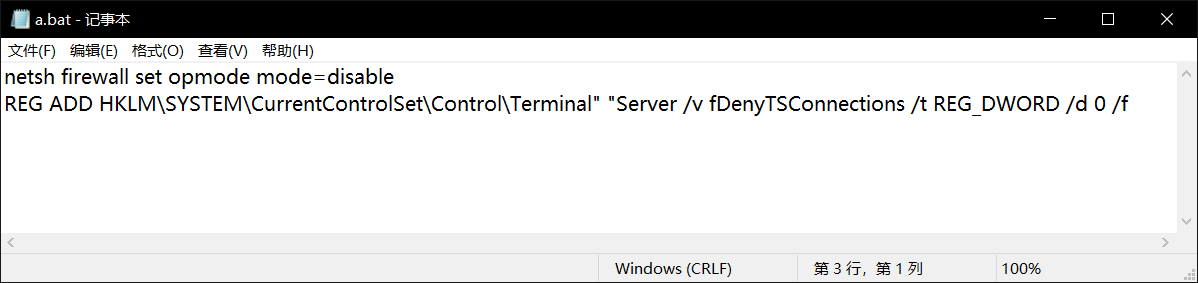 在win7上运行关闭防火墙,和开启3389端口的命令