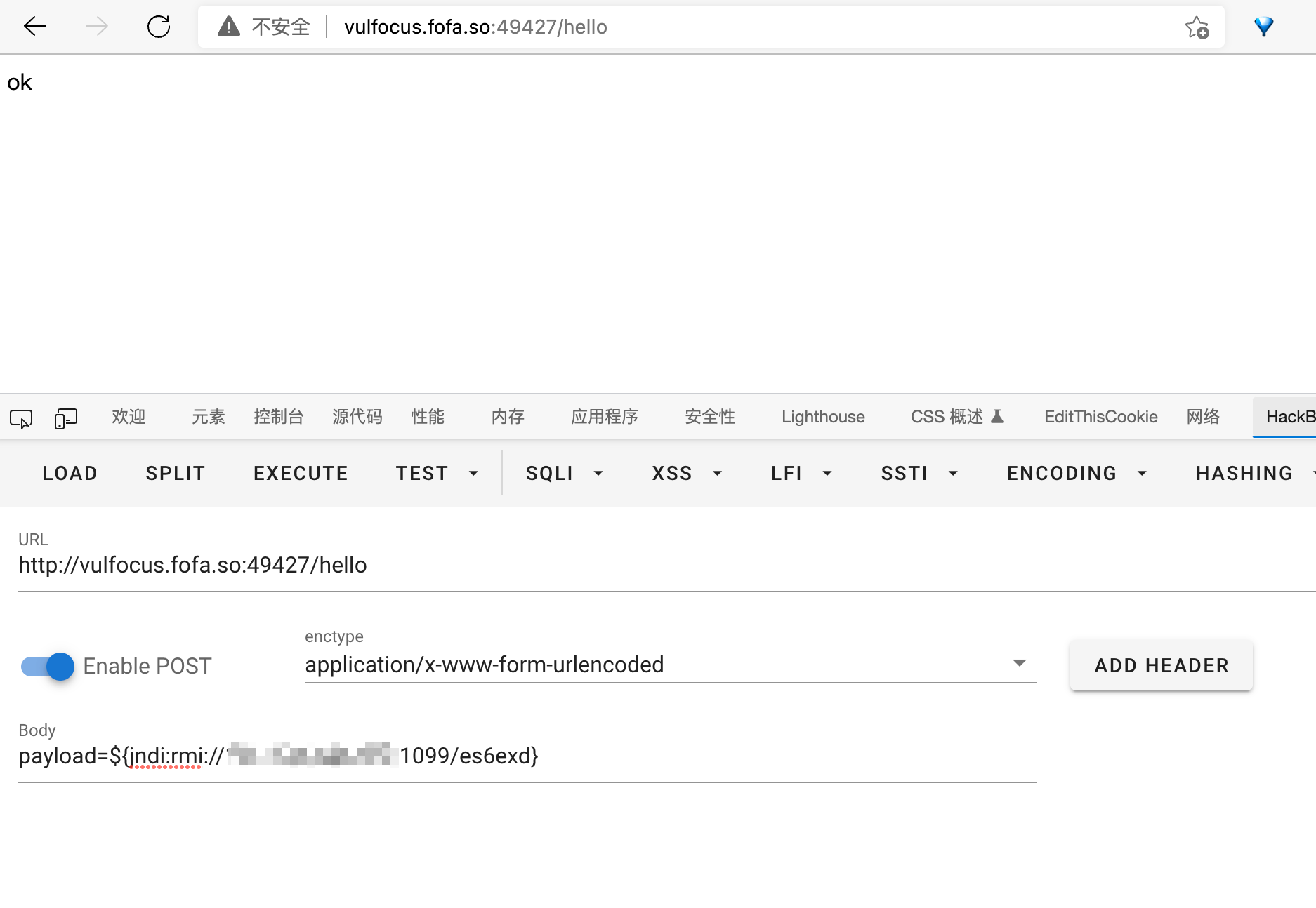 然后在hackbar中提交请求