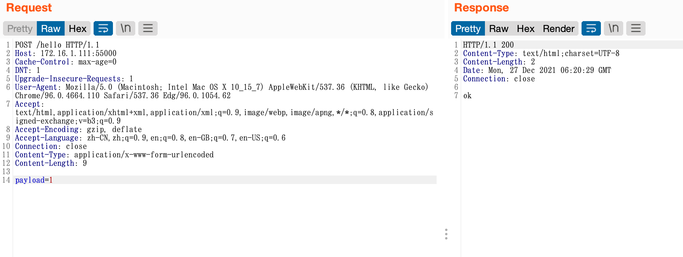 漏洞位置就是在 /hello。路径,请求方式POST 参数 payload。 ![]()