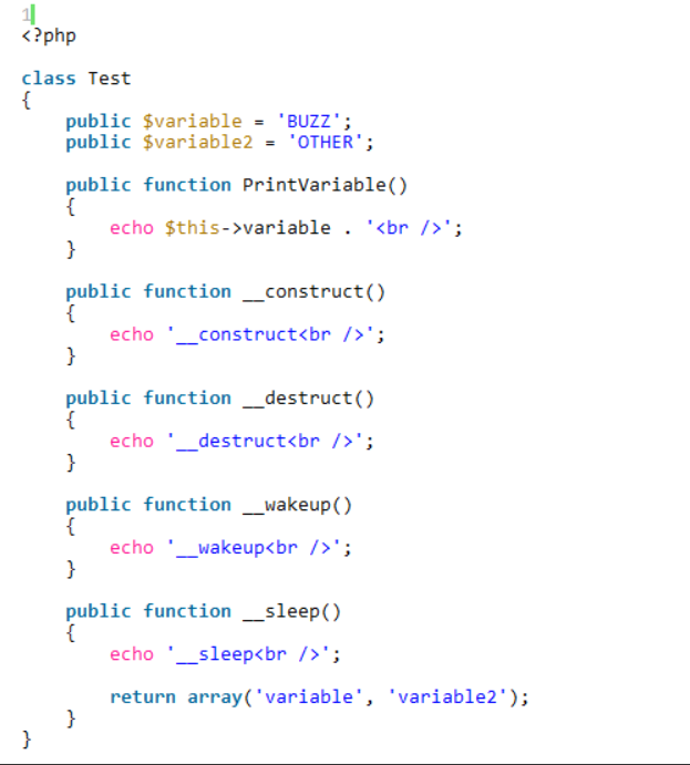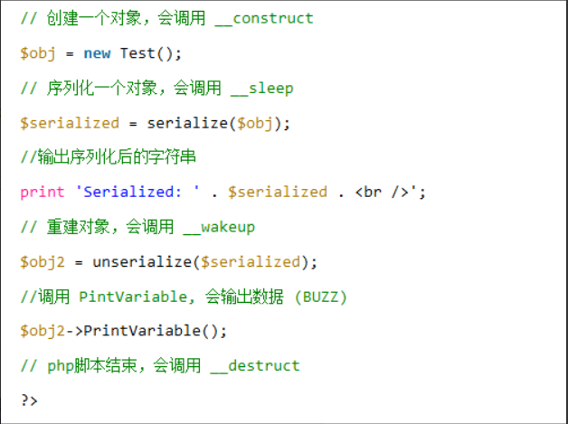可以看到serialize的时候调用了__sleep,unserialize的时候调用了__wakeup函数,在对象销毁的时候调用了__destruct函数