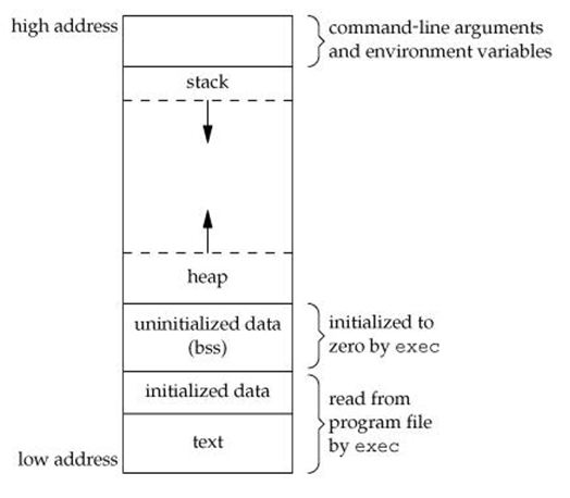 对于一个进程,其空间分布如下图所示: