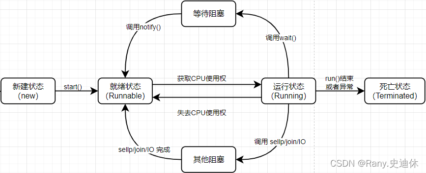 当线程调用了一个阻塞式的I/O方法时,该线程就会进入阻塞状态,如果想进入就绪状态,就必须要等待这个阻塞的I/O方法返回。