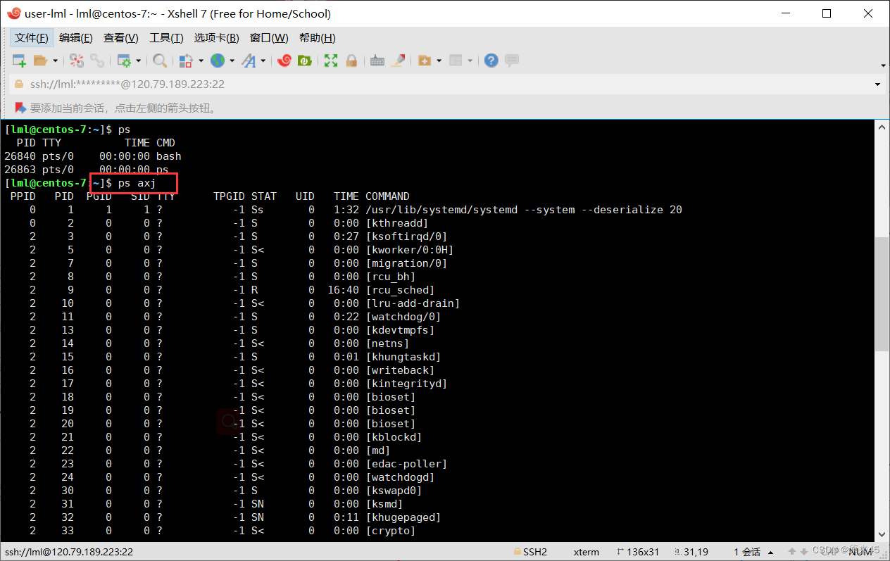 1. 进程的信息可以通过 /proc 系统文件夹查看proc:内存文件系统(当前系统实时的进程信息)2. 大多数进程信息同样可以使用top和ps这些用户级工具来获取ps axj -- 查看进程最常用的