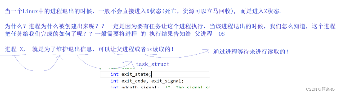 是因为父进程也是别人的儿子,就是bash去回收的!我们现在能看到我们自己的子进程的Z是因为我们写的代码里面没有去回收,后面讲。
