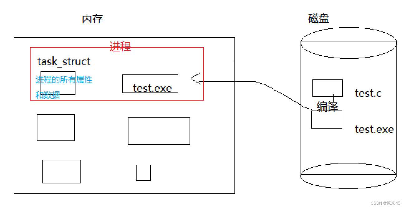 进程 = 可执行程序 + 该进程对应的内核数据结构(PCB)