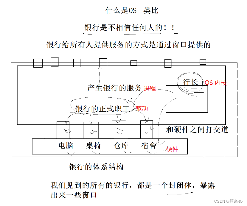 首先OS为什么要给我们提供服务?因为设计出来就是为了给我们提供服务的(废话文学属于是),但是我们调用printf或者是cout向显示器去打印数据的时候,显示器是硬件,我们自己有权限去直接写进数据去硬件吗?那自然是没有的,所以我们就需要OS提供的接口,操作系统是通过系统调用,对外提供服务的!Linux操作系统是用C语言写的,这里所谓的“接口”,本质就是C函数, 也就是说我们的系统调用,就是调用了操作系统提供的C函数。PS:Windows和Linux的系统接口是不一样的(比如工商银行和农业银行),但是我们调用的函数却是一样的?这就是很像多态,这也是平常说的代码的跨平台性。再次回来,我们自己写的代码运行就是一个进程,那别人写的当然也是!比如 ls pwd chgrp rm mkdir ....所有的指令都是一个进程!