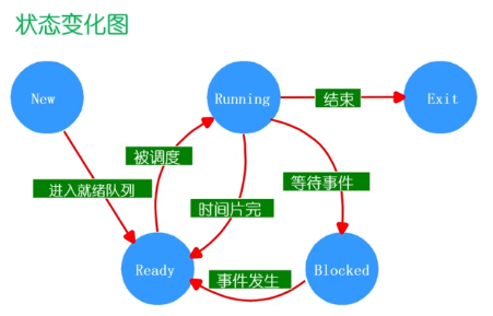 - 等待(阻塞)状态:一个进程正在等待某一事件而暂停运行时。如等待某资源,等待输入/输出完成。
