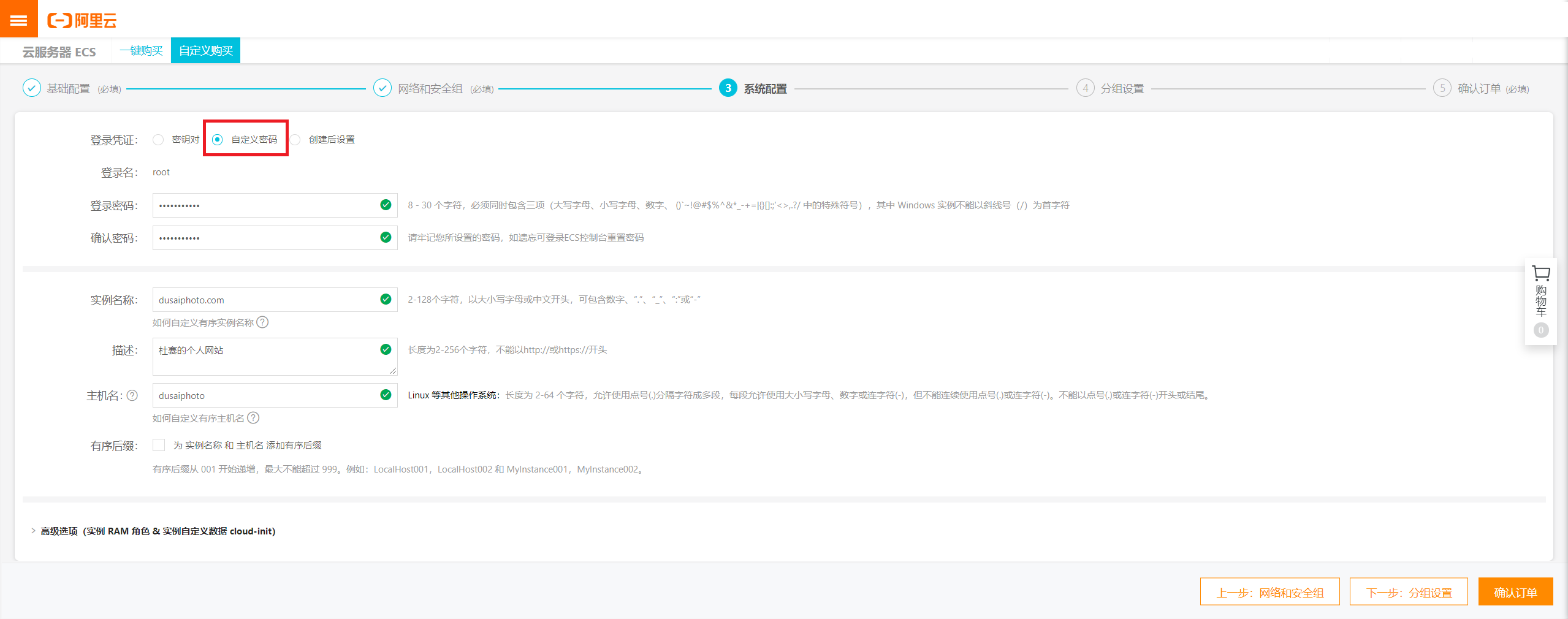 点击下一步,到分组设置页面。这个页面全部默认设置就好了。点击下一步,确认订单无误后,就可以付款啦。