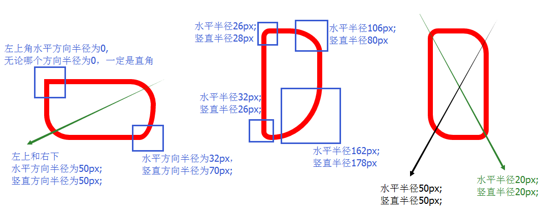 以上都是水平方向和竖直方向半径相等的例子,下面举两个水平方向和竖直方向半径不相同的例子: