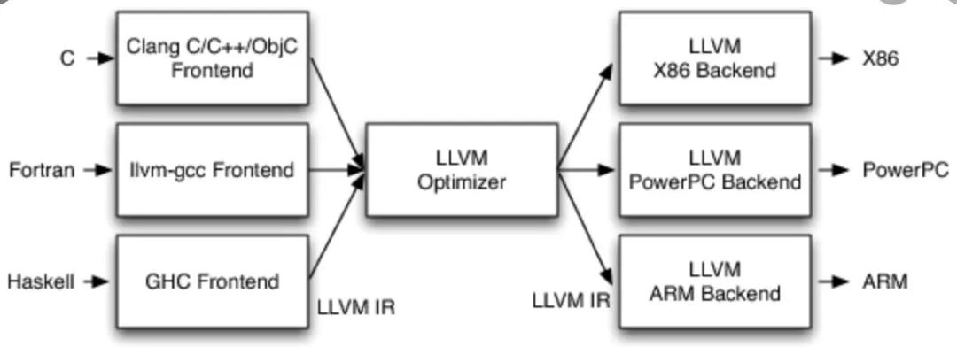 Intermediate Representation是架构设计中抽象能力的典型体现。不同编程语言的层次不一样,或者仅仅是单纯的支持的功能有些差异。但是,这些编程语言终归需要在某种硬件指令集上执行。所以在编译的过程中,他们会在某个抽象层次上形成共性的表达。而IR+Pass的方法很好的利用了这一点。其基本思想是通过多层Pass (编译改写过程),逐渐的把不同语言的表达方式在某个层次上改写成统一的IR的表达方式。在这个过程中,表达方式逐渐接近底层的硬件。而IR和Pass可以很好的被复用,极大的降低了研发的成本。