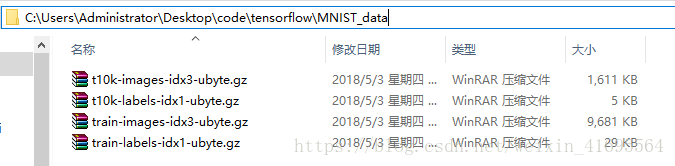 首先我们将MNIST数据集下载下来,并放在代码文件的目录下,如下所示:
