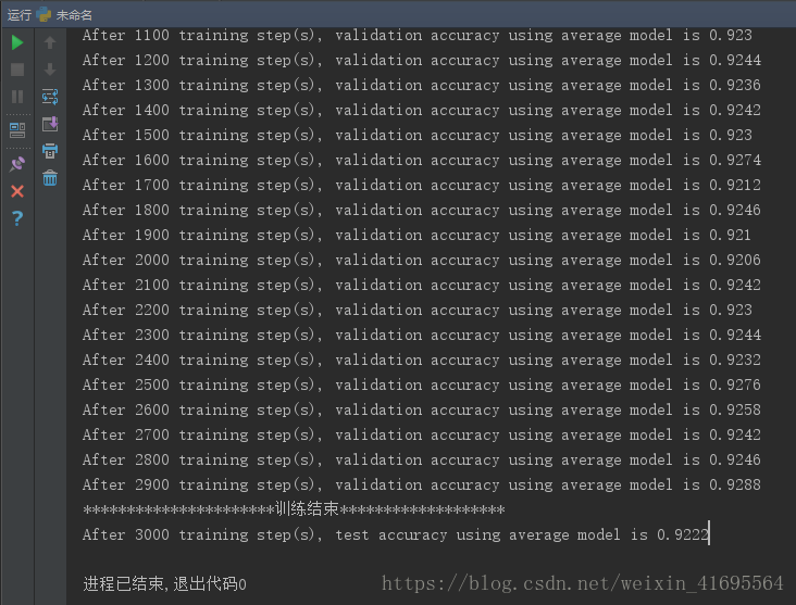 print("After %d training step(s), test accuracy using average model is %g" %(TRAINING_STEPS,test_accuracy))