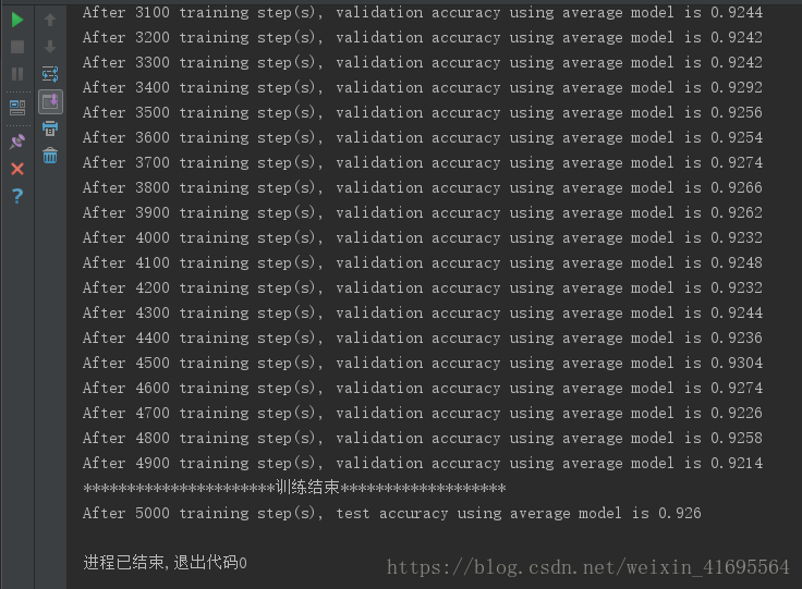 print("After %d training step(s), validation accuracy using average model is %g" %(i,validate_accuracy))