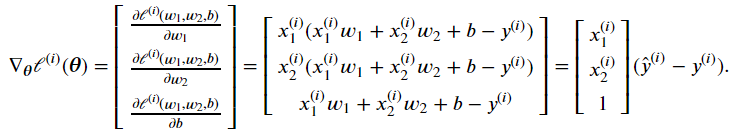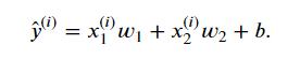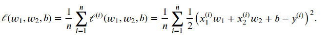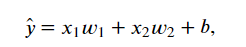 其中w1和?2是权重(weight),?是偏差(bias),且均为标量。它们是线性回归模型的参数(parameter)。输出?̂ 是对真实价格?的预测(估计)。通常允许它们之间有一定误差。