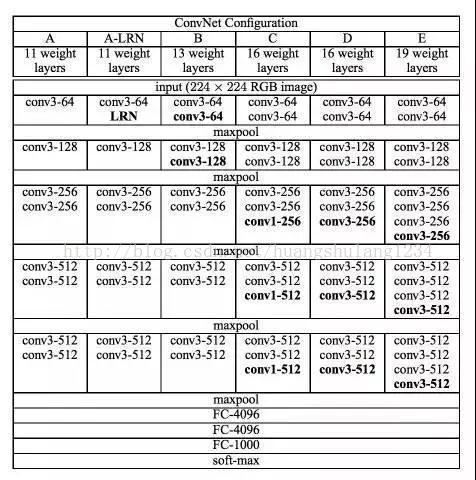 如图所示,VGG Net包含了连续的卷积层,卷积层后紧接着聚积层。聚积层负责让各个层变得更窄。在这篇由组内研究人员共同完成的论文中,他们提出了各种类型的网络,这些网络架构的主要差异是深度不同。