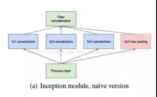 如上图所示,这个架构与我们之前看到的有序性架构相比,发生了巨大的改变。在单个层中出现了各种各样的“特征提取器”。这间接地提高了网络的性能,因为当处理任务时,网络在自我训练过程中的选择非常广泛。它既可以选择卷积输入,也可以选择直接将输入聚积起来。