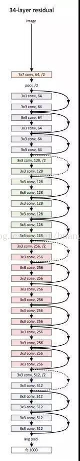 与GoogleNet类似,这些“残差模块”相互叠加,从而形成一个完整的网络的。