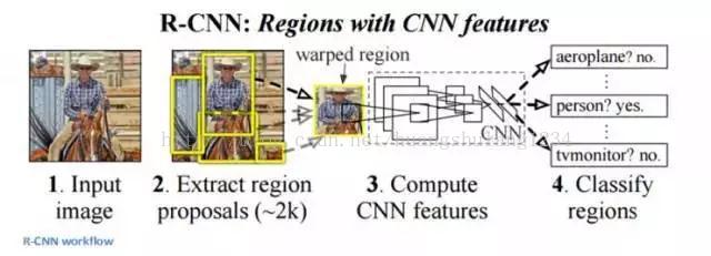 RCNN据说是用于解决物体识别问题的深度学习架构中最具影响力的网络架构。为了解决识别检测问题,RCNN试图框出图像中的所有物体,然后再识别图像中的物体具体是什么。其操作流程如下: