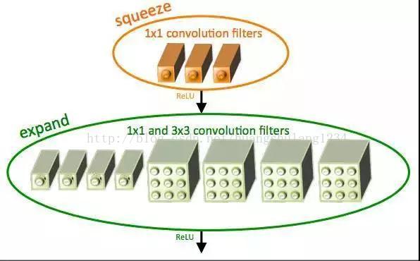 SqueezeNet架构是一个功能更加强大的网络架构,它在类似移动平台这样的低宽带场景中非常有用。这个网络架构仅占4.9MB的空间,而Inception则占超过100MB空间。这样显著的变化来源于一个叫做“fire模块”的结构。“fire模块”如下图所示: