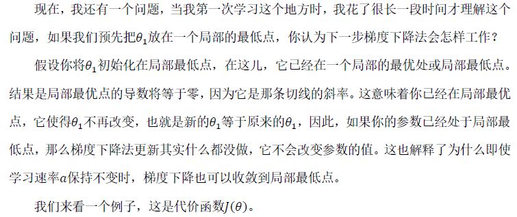 刚学习的梯度下降法的时候,看到前面的代码,一直纳闷难道不需要一个收敛判断条件判断获取的误差是否达到最小值?查看《机器学习个人笔记完整版》才知道梯度下降的时候,它会根据梯度大小自动收敛于一个局部最小值,并不需要额外的进行判断是否收敛到了局部最小值。由于局部最小值可能并不是全局最小值,那么为了找到全局最小值,我们可以多个初始值开始进行梯度收敛,从多个初始值收敛寻找几个局部最小值的最小值即为全局最小值。