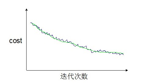 如果我们不是1000次迭代计算并打印一次,而是5000次迭代后才计算并打印一次。那么曲线可能会更加平滑一些(绿色线)。