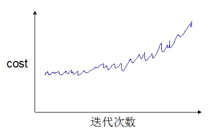 如果我们得到的曲线(1000次迭代并打印)是波动很剧烈,并且没有显示任何下降趋势,如下图: