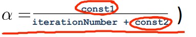 常量1和常量2的目的是为了保证学习率在一个正常的范围内(不至于当循环次数很高或很低时,学习率会变得过大或过小)。