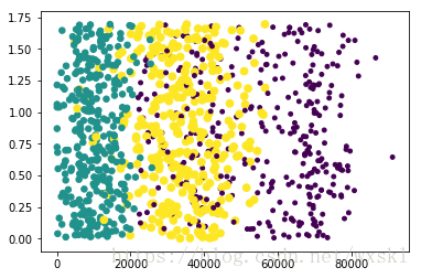 #以第二列和第三列为x,y轴画出散列点,给予不同的颜色和大小