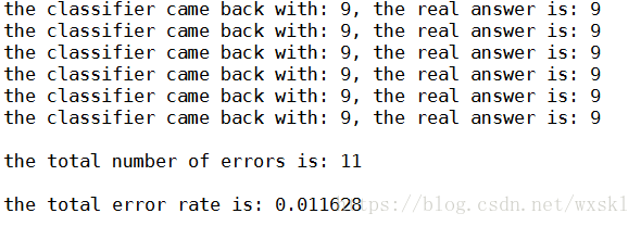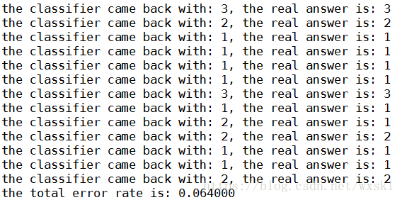 print ("nthe total error rate is: %f" % (errorCount/float(mTest)))
