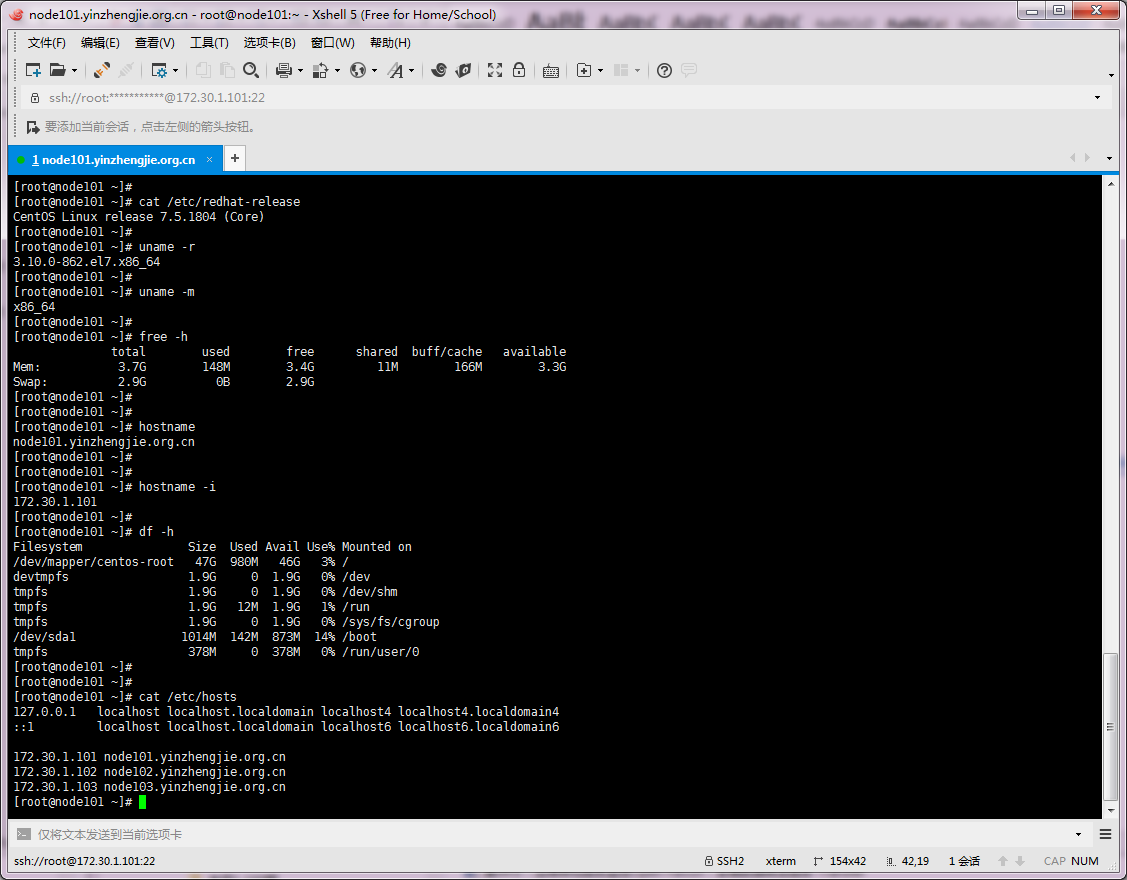 [root@node101 ~]# xrsync.sh /etc/hosts =========== node102.yinzhengjie.org.cn : /etc/hosts =========== 命令执行成功 =========== node103.yinzhengjie.org.cn : /etc/hosts =========== 命令执行成功 [root@node101 ~]# [root@node101 ~]# xcall.sh cat /etc/hosts ============= node101.yinzhengjie.org.cn : cat /etc/hosts ============ 127.0.0.1 localhost localhost.localdomain localhost4 localhost4.localdomain4 ::1 localhost localhost.localdomain localhost6 localhost6.localdomain6 172.30.1.101 node101.yinzhengjie.org.cn 172.30.1.102 node102.yinzhengjie.org.cn 172.30.1.103 node103.yinzhengjie.org.cn 命令执行成功 ============= node102.yinzhengjie.org.cn : cat /etc/hosts ============ 127.0.0.1 localhost localhost.localdomain localhost4 localhost4.localdomain4 ::1 localhost localhost.localdomain localhost6 localhost6.localdomain6 172.30.1.101 node101.yinzhengjie.org.cn 172.30.1.102 node102.yinzhengjie.org.cn 172.30.1.103 node103.yinzhengjie.org.cn 命令执行成功 ============= node103.yinzhengjie.org.cn : cat /etc/hosts ============ 127.0.0.1 localhost localhost.localdomain localhost4 localhost4.localdomain4 ::1 localhost localhost.localdomain localhost6 localhost6.localdomain6 172.30.1.101 node101.yinzhengjie.org.cn 172.30.1.102 node102.yinzhengjie.org.cn 172.30.1.103 node103.yinzhengjie.org.cn 命令执行成功 [root@node101 ~]#