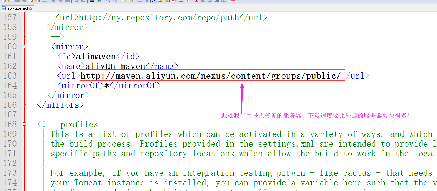 3>.指定Maven的镜像地址(我们修改为阿里的或者我们自己建立的私有仓库)