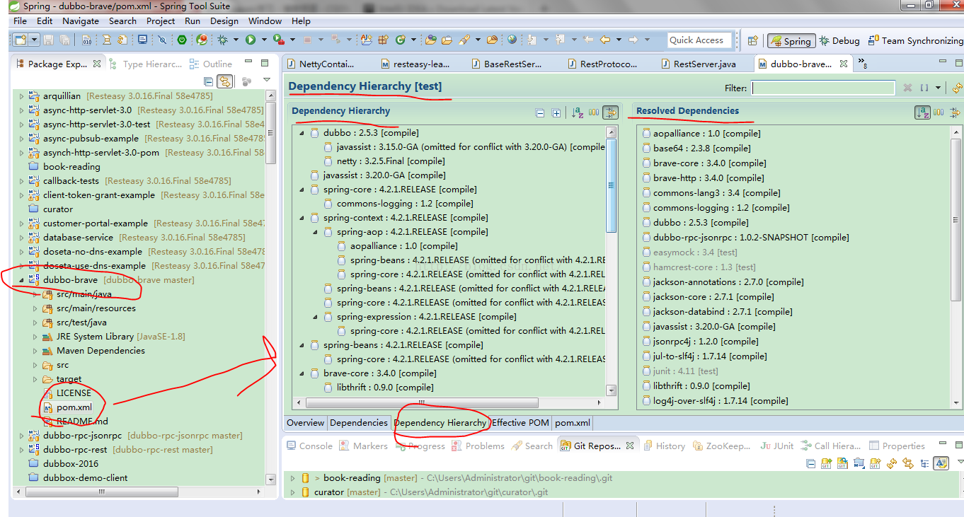 项目中经常要查看项目中所依赖的其它lib,现在流行的工具sts(Spring Tool Suite),或者IntelliJ IDEA 都提供了可视化界面。例如sts: